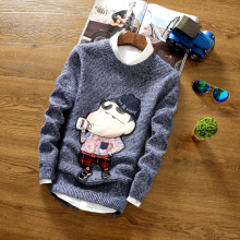 春款韩版男士毛衣圆领卡通针织衫长袖T恤男青少年毛线衣男衣服潮