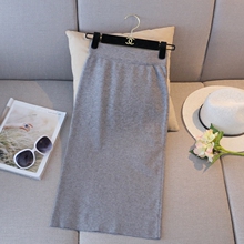 雪梨 定制秋季韩版两穿灰色针织半身裙中长款包臀