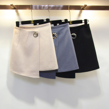 闺妃 2016秋冬新款高腰不规则金属扣毛呢短裙修身显瘦包臀a字短裙