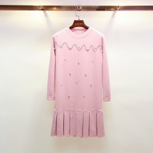 闺妃2017春季新款韩版圆领套头手工钉珠毛衣修身长袖针织连衣裙女