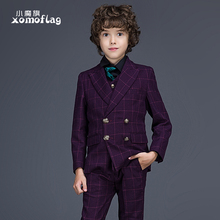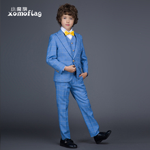 小魔旗儿童西服套装 男童秋装主持人格子小西装 花童礼服秋韩版潮