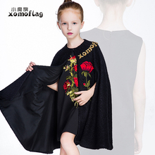 小魔旗女童斗篷披肩黑色 新款儿童外套春秋宝宝斗篷披风 韩版加厚