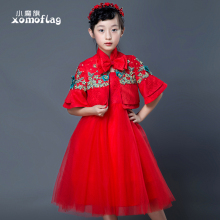 小魔旗女童礼服裙秋 新款儿童礼服公主裙 长袖花童礼服古筝中国风