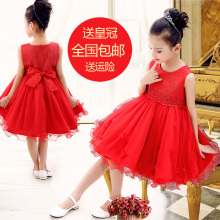 女童2016连衣裙公主蓬蓬裙纱裙花童婚 红色婴儿礼服百天礼服