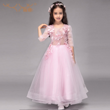 媛鹿儿童礼服公主裙花童礼服婚纱长袖走秀钢琴演出服女童晚礼服裙