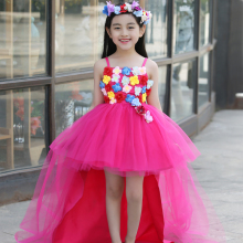 儿童婚纱拖尾裙 花童礼服女童公主裙童装蓬蓬裙晚礼服 六一演出服