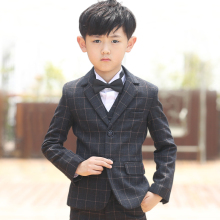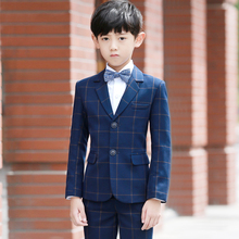 男童西装格子 儿童小西服中大童花童礼服男套装男孩西服春