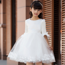 儿童礼服女童公主裙春款长袖花童礼服女女童婚纱童装晚礼服蓬蓬裙