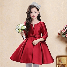 女童高档晚礼服红色长袖公主裙儿童灰姑娘婚纱生日花童演出服春夏