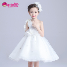 女童礼服裙欧根纱婚纱裙儿童公主裙蓬蓬裙斜肩吊带裙花童裙中长款