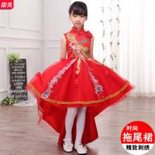 儿童生日晚礼服女童公主裙钢琴演出服模特走秀大童花童婚纱裙拖尾