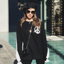 周扬青 2017春季男女情侣刺绣中长款套头无帽宽松休闲 翅膀卫衣
