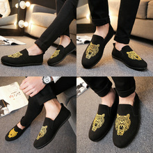 亚途春夏新款英伦豆豆鞋时尚印花潮鞋套脚皮鞋舒适驾车鞋休闲男鞋