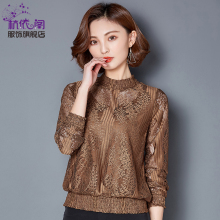 杭依阁 打底衫女2017春装新款韩版修身女装春秋蕾丝长袖小衫上衣