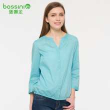 堡狮龙夏装新款女装时尚纯色可卷七分袖v领上衣 821037050