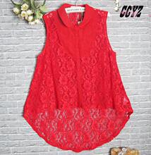 外贸原单 时尚衬衣款娃娃领 蕾丝衫 婚宴红