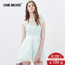 ONE MORE文墨高腰娃娃领连衣裙女泡泡袖短裙A字裙子