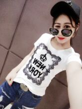 欧洲站2017夏季新款短袖体恤字母修身半袖t恤女韩版打底衫上衣潮