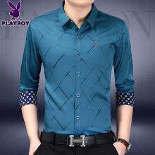 花花公子休闲衬衫男夏季薄款长袖衬衣免烫大码男装中年印花寸衫潮