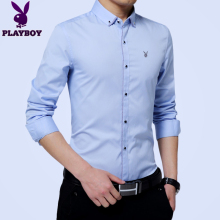 花花公子春秋男士长袖衬衫青年男时尚修身韩版潮休闲男装纯棉衬衣