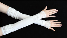 2017春夏季新款勾指贴花蕾丝针织全棉臂套防晒防紫外线袖套加长款