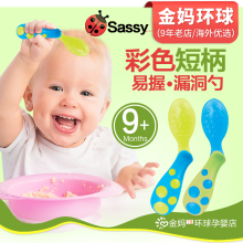 美国Sassy彩色短柄易握训练勺 漏洞勺/小漏勺 宝宝爱吃饭 拆单4色