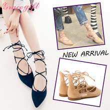 Grace gift尖头交叉绑带性感芭蕾平底鞋单鞋P325-9