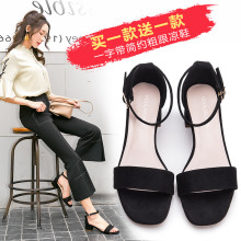 KOOLABURRA凉鞋女夏2017新款百搭中跟一字扣带粗跟韩版简约高跟鞋