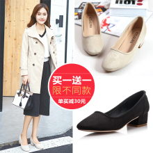 KOOLABURRA2017春季新款韩版方头粗跟单鞋女复古中跟浅口休闲女鞋