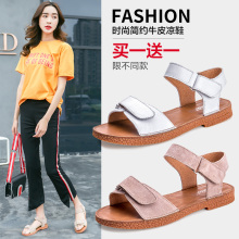 凉鞋女夏2017新款韩版学生百搭平底沙滩鞋真皮平跟简约罗马鞋子女