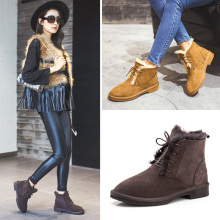 冬季新款加绒女鞋加绒雪地靴皮毛一体短筒靴系带真皮马丁靴子女靴