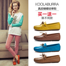 koolaburra头层牛皮豆豆鞋女真皮春平跟唐卡驾车鞋平底软面皮单鞋
