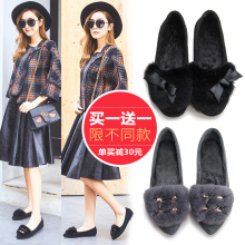 2017春季新款毛毛鞋女单鞋真皮厚底兔毛加绒棉瓢鞋平底韩版豆豆鞋