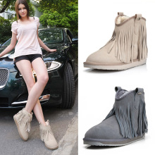 koolaburra雪地靴女流苏冬季短靴 真皮女鞋短筒靴 平跟棉鞋女靴子
