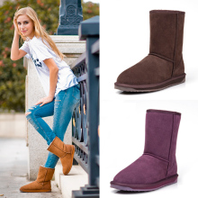 koolaburra雪地靴女中筒加厚真皮冬季学生棉鞋平底防滑加绒女靴子