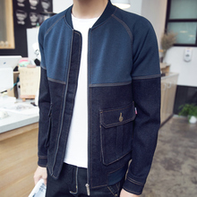 泽度牛仔夹克男潮流拼接男款牛仔衣青年长袖修身牛仔外套韩版夹克