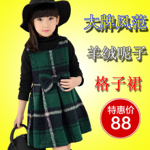 女童连衣裙背心裙2016新款秋冬羊毛呢格子裙中大童女孩呢子公主裙