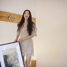 渔自制 两色 定位水溶蕾丝 收腰A字摆 连衣裙