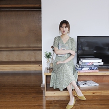 渔自制 优雅绿色碎花连衣裙 长的短的都是这个链接~