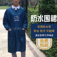 高档男女防水加长长袖围裙 不粘毛洗车画画理发简约反穿罩衣包邮