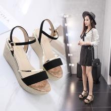坡跟凉鞋女防水台松糕厚底一字扣高跟凉鞋露趾防滑2017夏季新款潮