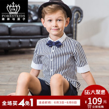森林与孩子童装男童短袖衬衫儿童百搭休闲半袖衬衣2017夏装中大童