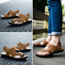 春季男士休闲沙滩鞋罗马鞋皮凉鞋男凉拖鞋镂空新款男鞋韩版懒人鞋