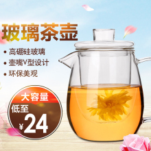 耐热玻璃茶壶大容量加厚耐高温透明玻璃过滤内胆花茶壶恒温60°