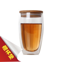 耐热玻璃杯双层水杯创意咖啡杯透明保温泡茶杯子牛奶杯带盖竹盖