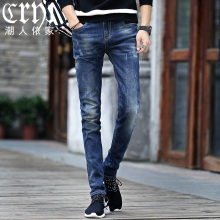 弹力青年男士小脚裤韩版修身款直筒长裤子春秋季青少年牛仔裤四季