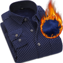 喜姿龙冬季男士保暖衬衫加绒加厚韩版修身印花格子男装衬衣男长袖