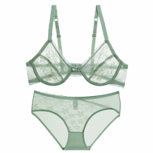 薄模杯有钢圈蕾丝超薄款透明透视聚拢型上托镂空内衣女文胸套装