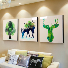 客厅装饰画沙发背景墙挂画餐厅卧室壁画无框三联画现代简约水晶鹿