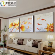 沙发背景墙装饰画壁画中式客厅挂画三联无框画现代简约三联九鱼图